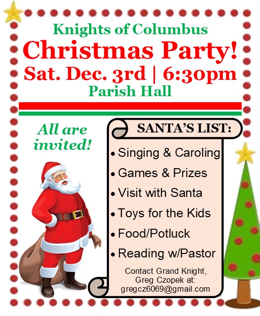 12/3 KofC Christmas Party Share this: Click to print (Opens in new window) Print Click to email a link to a friend (Opens in new window) Email Click to share on Facebook (Opens in new window) Facebook