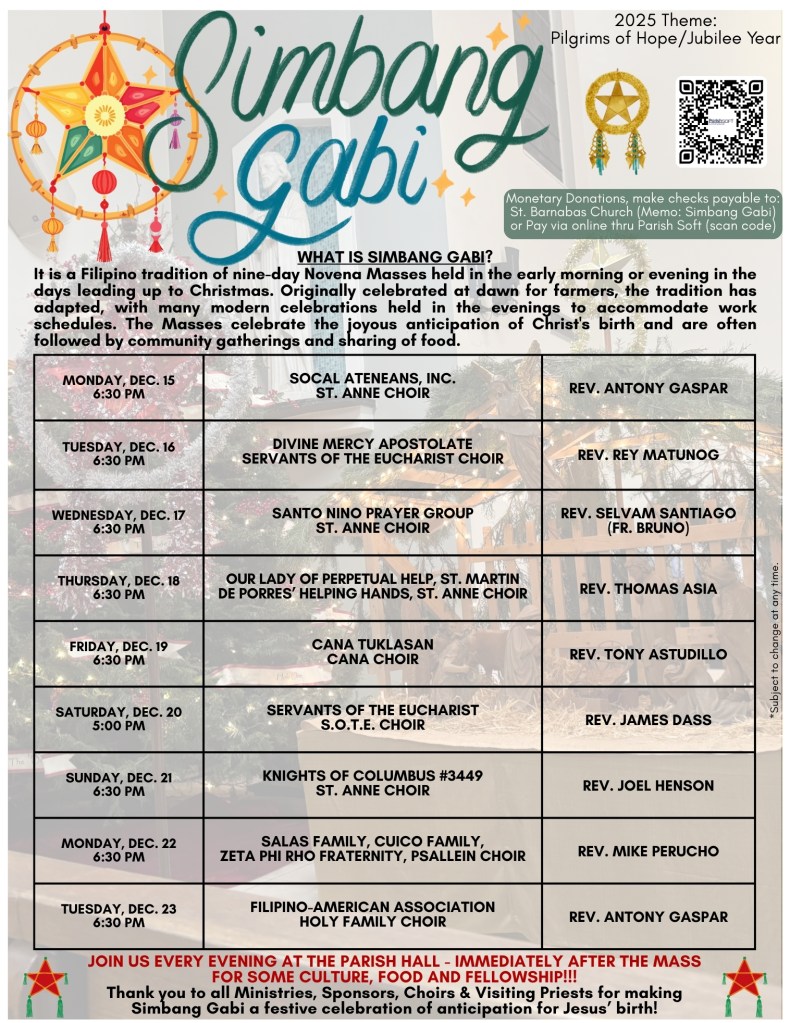 12/15-23 Simbang Gabi Share this: Print (Opens in new window) Print Email a link to a friend (Opens in new window) Email Share on Facebook (Opens in new window) Facebook