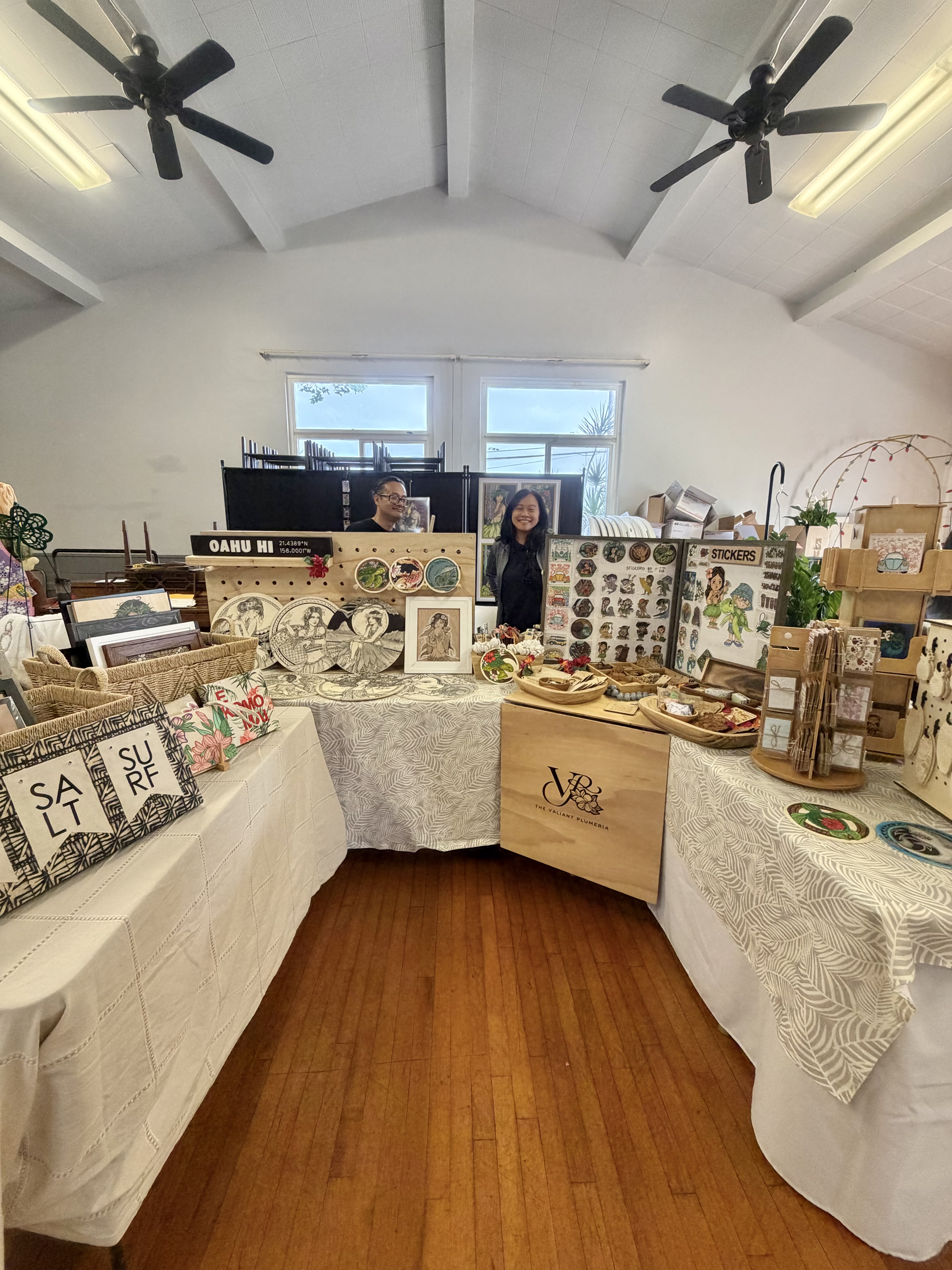 | Annie Valiente/Joeffrey (sibling): ornaments, wood drawings/sketches/paintings, stickers & more | The Valiant Plumeria / Ohana Koa Collective |